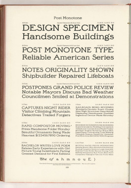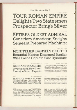 “Post Monotone” and “Post Monotone No. 2” in American Specimen Book of Type Styles published by American Type Founders Company (1912)